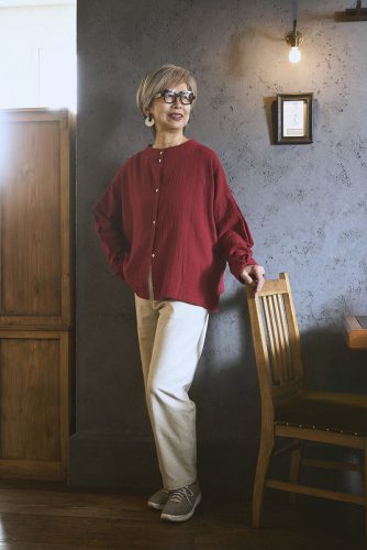 毎秋ご紹介のコプスの定番ですが、今回はイメージモデルとして、エディターの依田邦代さんにご協力いただきました。